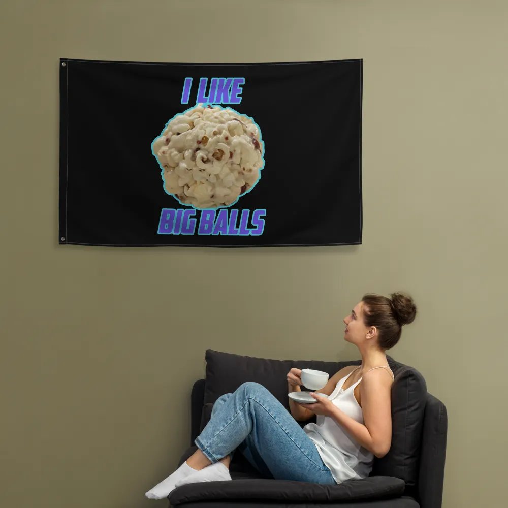 Add personality to any space by making a bold statement, "I like Big balls!". This flag is sure to make an impression on all who gaze upon it's glory.